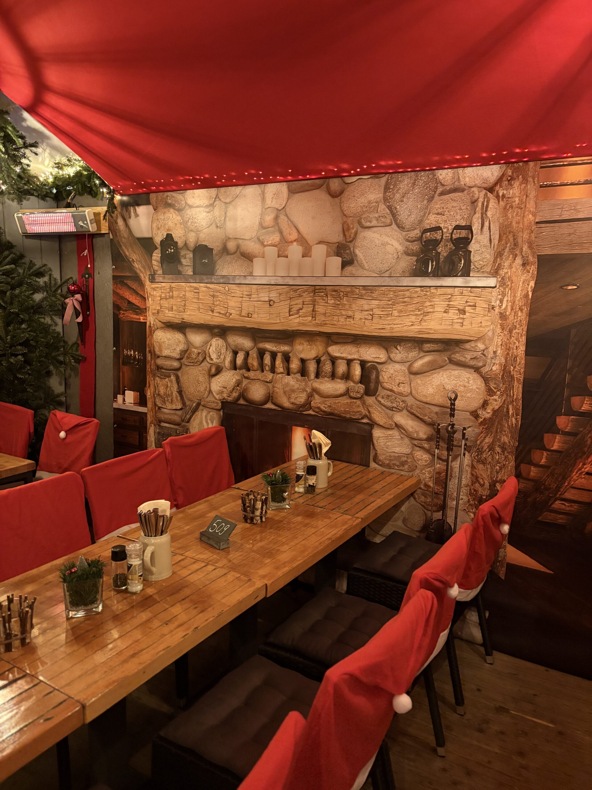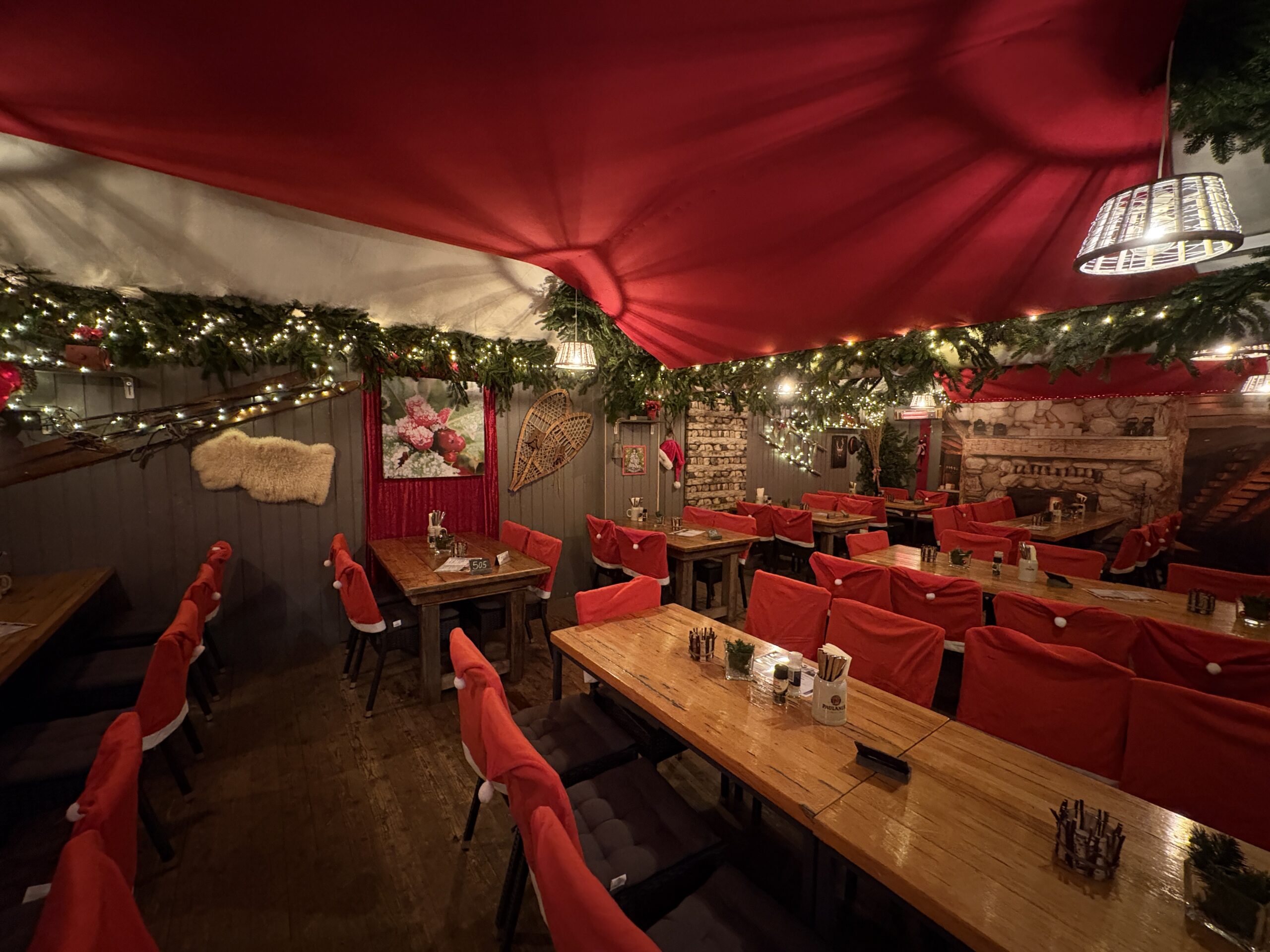 Während der Schnee leise rieselt und die Glöckchen klingen, wird es bei uns im Biergarten richtig weihnachtlich. Denn unser sommerlicher Außenbereich verwandelt sich in eine Winterlandschaft und in einen Tannenwald.