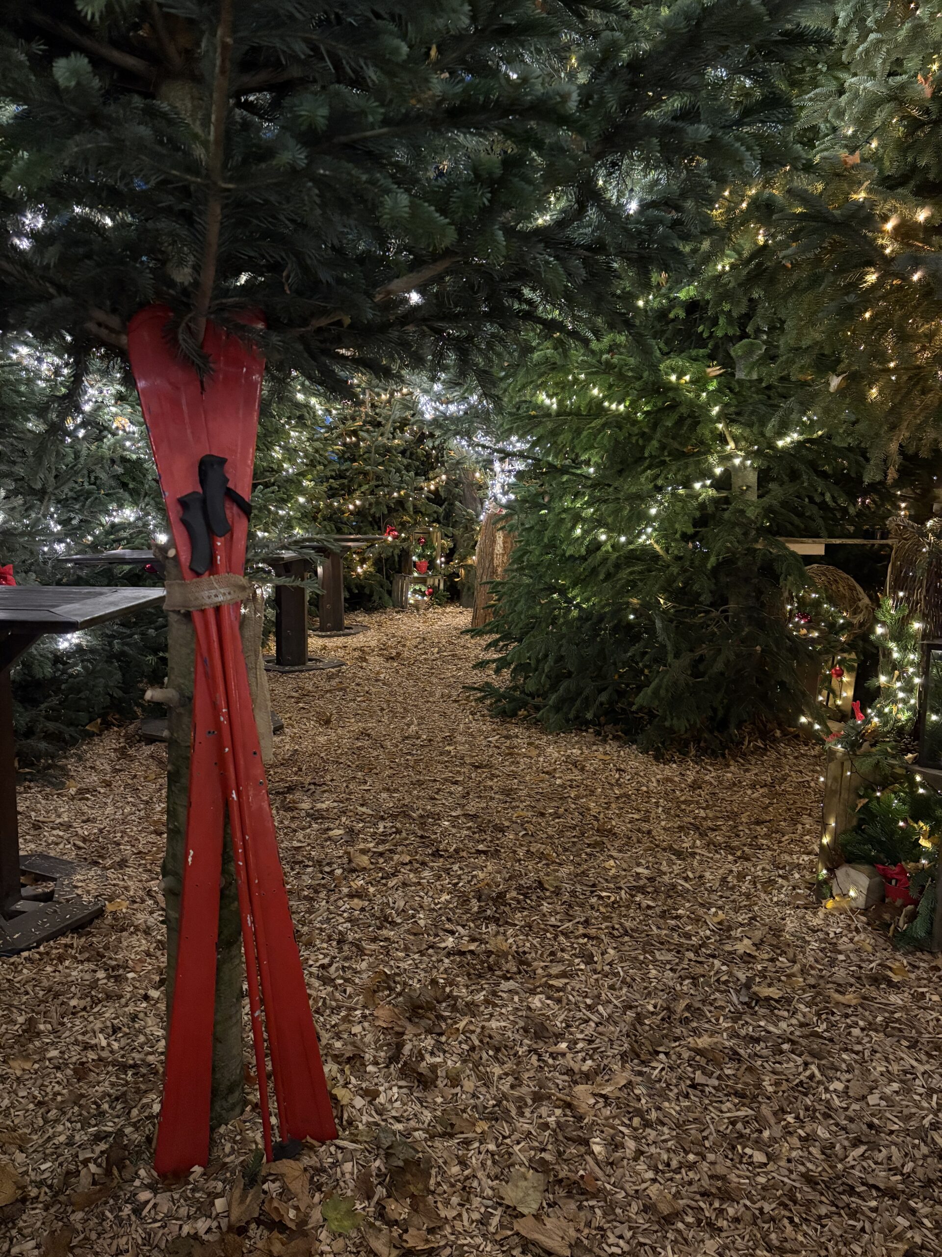 Über 30 Nordmann-Tannen lassen den Biergarten zum Winterwald werden. Gepaart mit weihnachtlicher Deko ist es der Winterwald in Hannover.